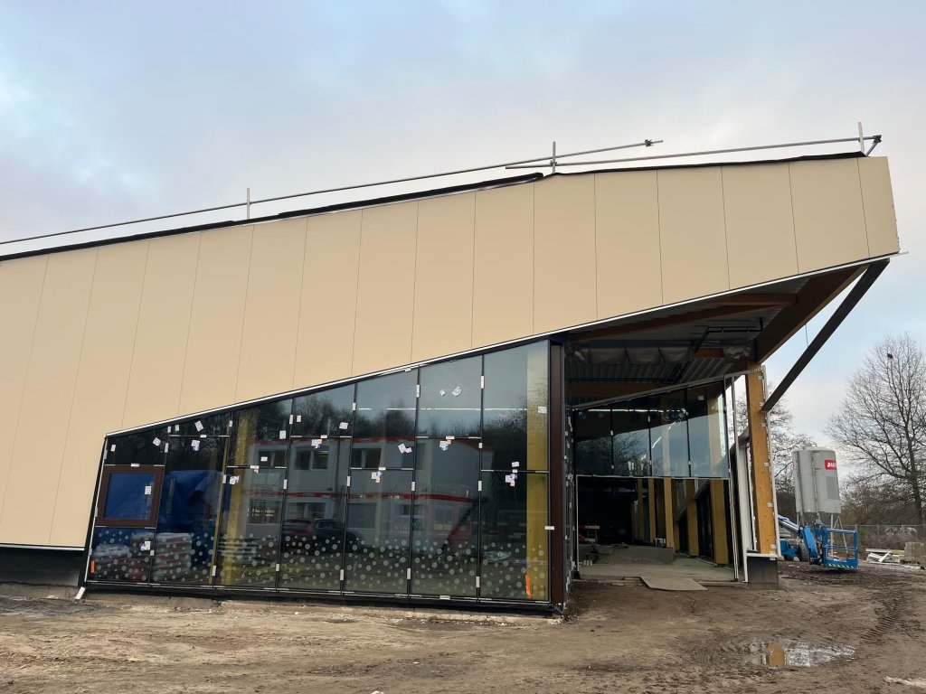 Ondanks het weer kunnen de werkzaamheden gelukkig gewoon door. Het gebouw is nu officieel wind- en waterdicht! Met alle sneeuw en regen van afgelopen tijd is dat een mooie timing. De komende tijd gaat de aannemer aan de slag met de afwerking van het gebouw. Op weg naar de opening van een mooi, nieuw zwembad voor Eersel.