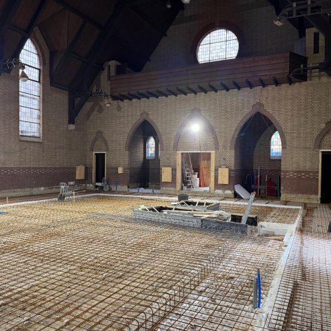 De eerste fase bestond uit het uitgraven van de kelder, een ingrijpende klus die inmiddels succesvol is afgerond. Vervolgens zijn de contouren van de uitbouwen aan beide zijden van het gebouw zichtbaar geworden. Deze uitbouwen vormen straks extra ruimte voor activiteiten en ontmoetingen.